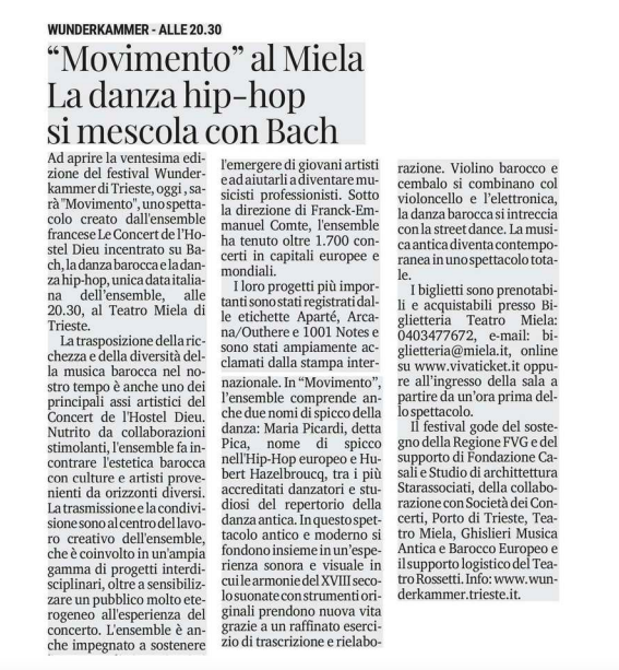 Unica data italiana dello spettacolo dell’ensamble francese, che unisce danza barocca e hip-hop