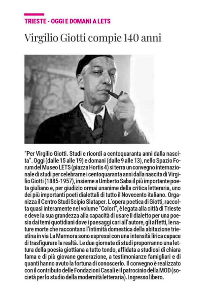 Due giorni di convegno internazionale per celebrare i 140 anni dalla nascita del poeta Virgilio Giotti