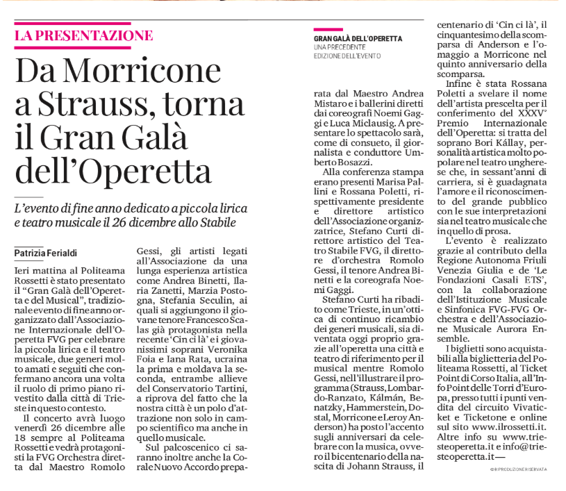 Da Morricone a Strauss: torna il Galà dell’Operetta