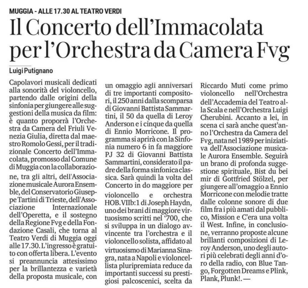 Oggi a Muggia il tradizionale Concerto dell’Immacolata
