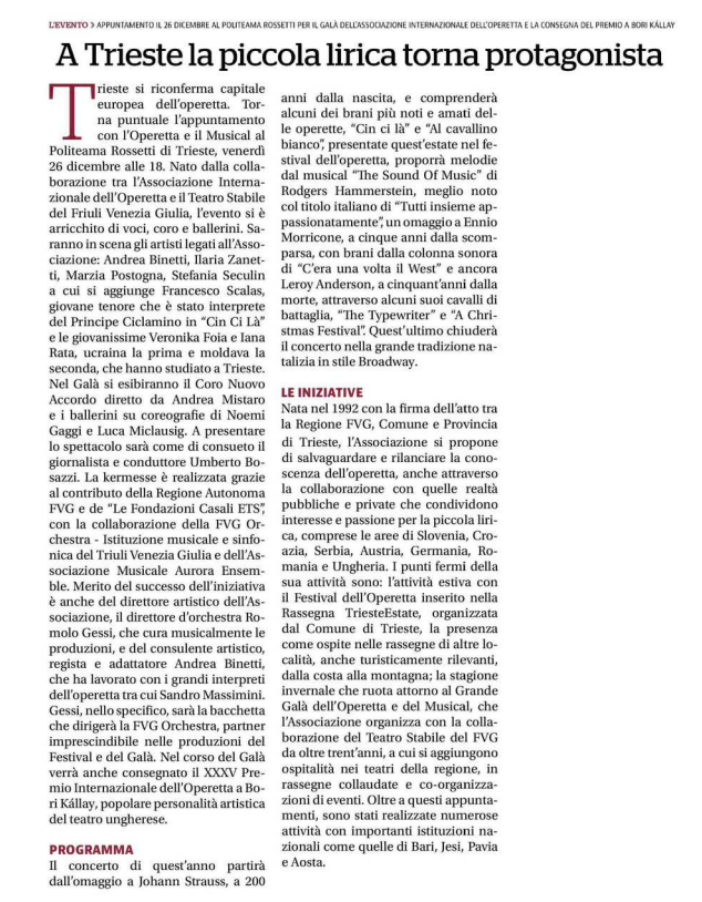 Venerdì 26 dicembre alle 18 torna al Rossetti l’importante evento, sostenuto anche dalle Fondazioni Casali ETS